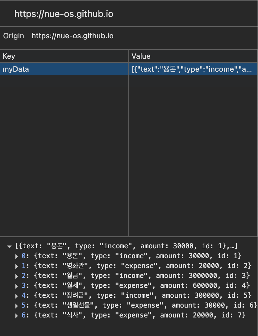 - LocalStorage에 저장해서 새로고침해도 데이터가 유지되도록 관리